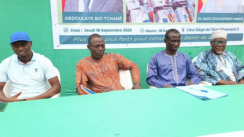 Le jeudi 18 septembre 2025, une cérémonie de remise de kits scolaires a eu lieu dans l’enceinte de l’arrondissement de Djougou 3, sous le leadership du Ministre d’État Abdoulaye Bio Tchané. Cette initiative, menée par le jeune leader El Hadj Zoulkifirou Mako, a pour but de soutenir les parents d’élèves et les apprenants de la localité.