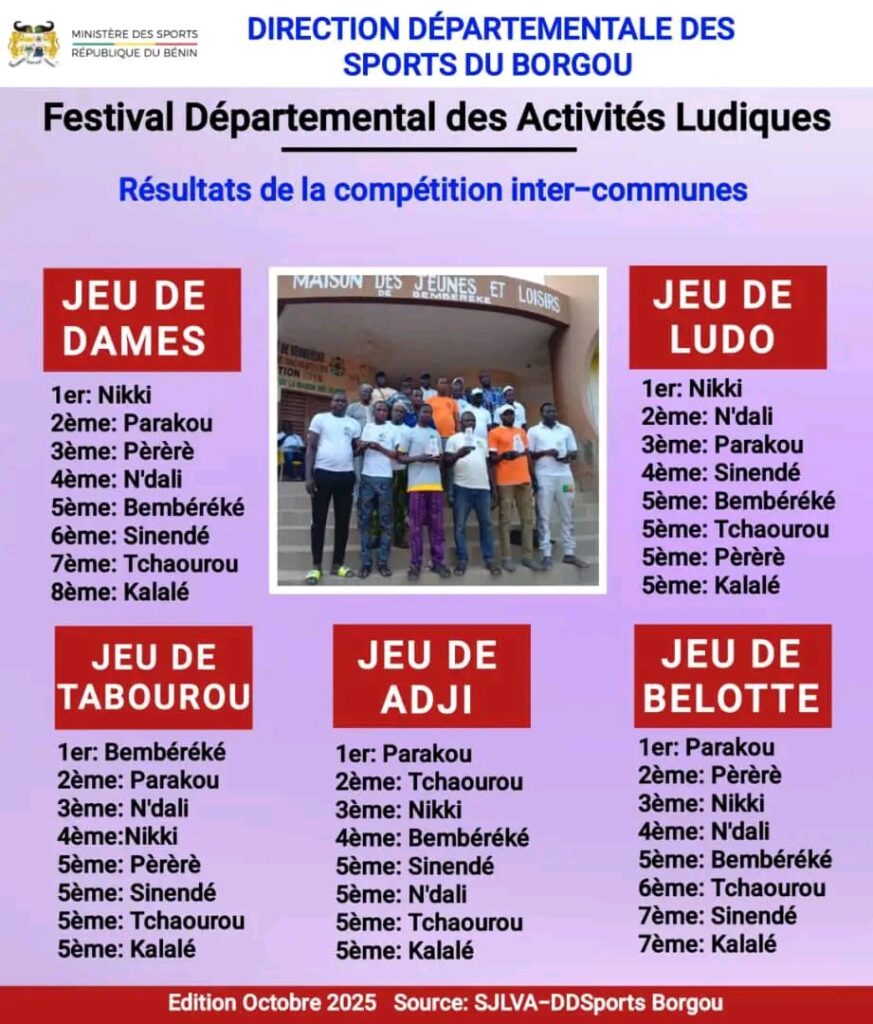 - Jeu de Dames : 1er Nikki, 2ème Parakou, 3ème Pèrèrè