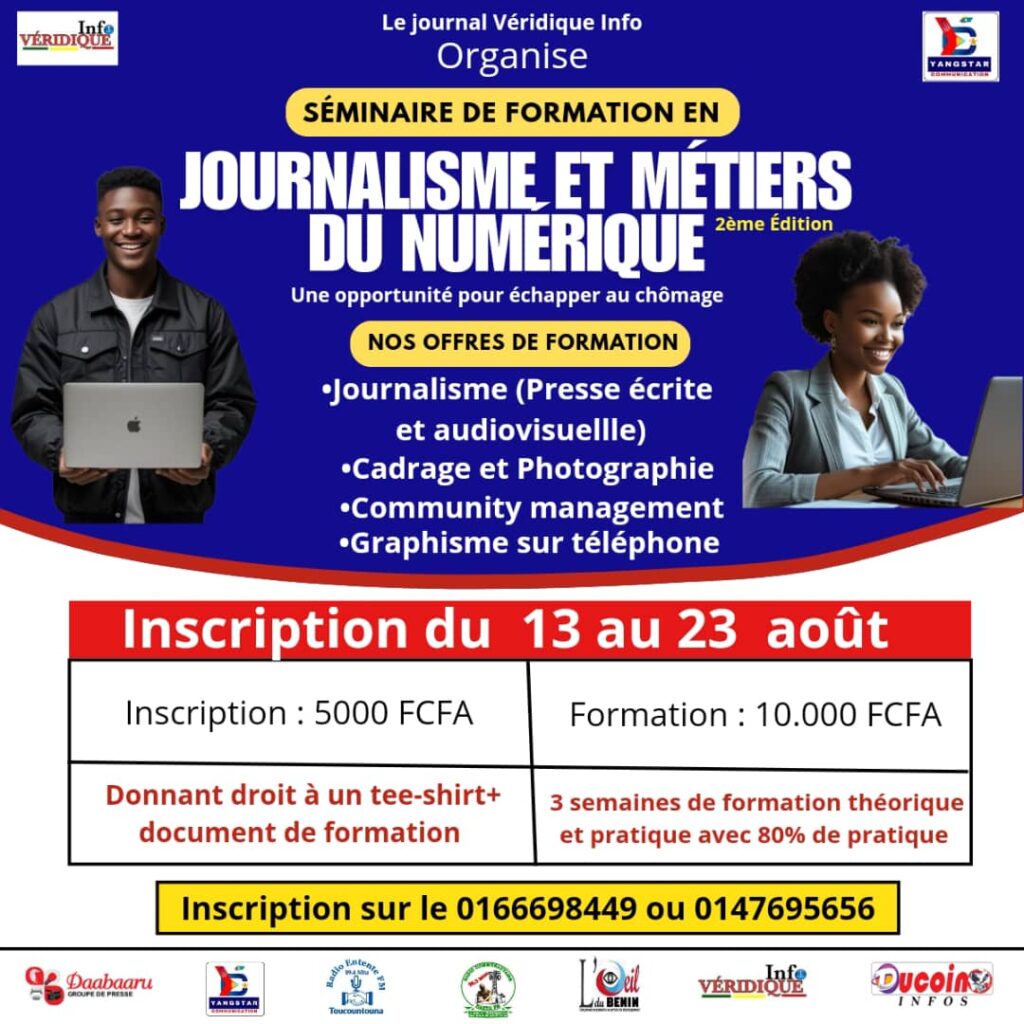 Après la tenue de la première édition dans la commune de Toucountouna en 2023, le quotidien numérique Veridique Info, un media d’informations, d’analyses et de développement basé à Natitingou et appartenant à l’agence Yangstar Communication, organise la 2ème édition de son séminaire de formation en journalisme et métiers du numérique.
