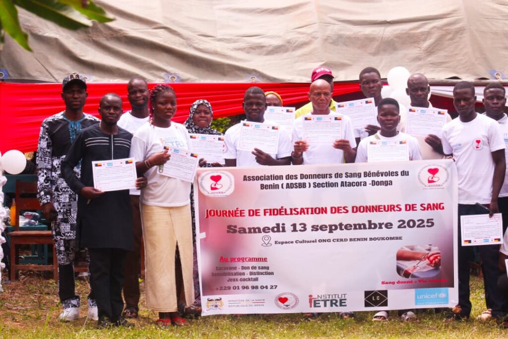 L’Espace Culturel de l’Ong Cerd-Benin de Boukombé a abrité samedi 13 septembre 2025, la célébration de la fidélisation des donneurs de sang. Portée par l’Association des Donneurs de Sang Bénévolat (Adsbb) section Atacora-Donga en partenariat avec l’Agence Nationale de Transfusion Sanguine (Ants), l’initiative a bénéficié de l’appui technique et financier de l’Unicef.