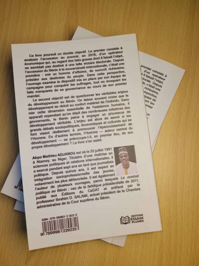 L’ouvrage propose une analyse de l’accession au pouvoir de Patrice Talon et des politiques menées depuis 2016. Au-delà du bilan, l’auteur formule des propositions structurées pour l’avenir, s’inscrivant dans la dynamique “Bénin Vision 2060” autour de quatre piliers : politique, économique, culturel et international.
