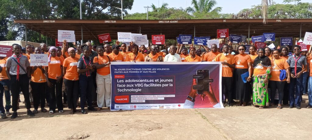 L’Université de Parakou (Up) a abrité, ce mardi 2 novembre 2025, le lancement des 16 jours d’activisme contre les violences faites aux femmes et aux filles. L’initiative a été lancée autour du thème : « Les adolescent·es et jeunes face aux Violences Basées sur le Genre (VBG) facilitées par la technologie ». Étaient présentes plusieurs autorités, à l’instar du vice-recteur chargé des affaires académiques, Thierry ADOUKONOU ; du directeur du Cous-P, Abdou-Raouf CESSI SIDI ; du coordonnateur du bureau décentralisé du Fonds des Nations Unies pour la population (Unfpa) de Parakou, Pierre TOGBE ; ainsi que des participants issus de diverses associations estudiantines